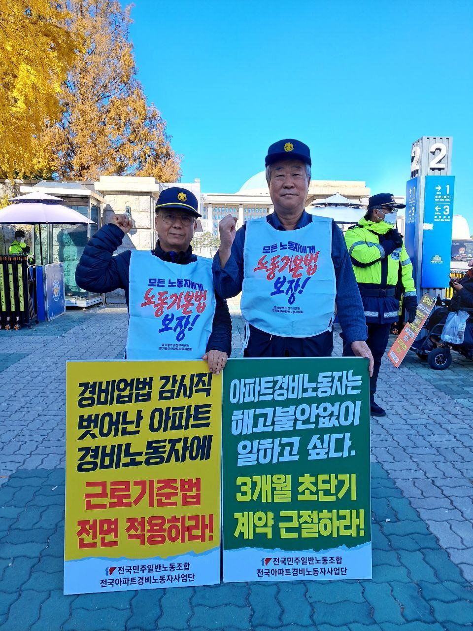 그런데 노동 존중은 커녕 초단기계약, 저임금에 휴게실도 없는 곳이 많습니다. 경비노동자 당사자와 전국의 노동센터에서 경비노동자 사업단을 꾸려 국회와 자치단체를 상대로 법개정, 제도 개선을 요구한지 벌써 5년이 훌쩍 지났습니다.
